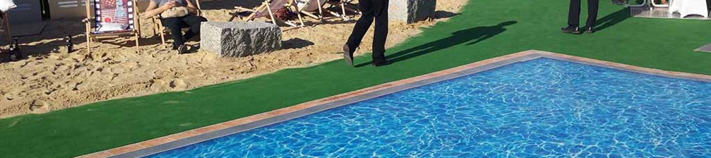At the Open House event of the Karl Gröner GmbH in Germany the creative possibilities of ASLAN floor graphic films were impressively displayed: With the self-adhesive digital printing film for applications on asphalt, the ground was turned into a unique and authentic looking swimming pool. Next to some actual sand and inviting deckchairs the life size print created an even more realistic look.