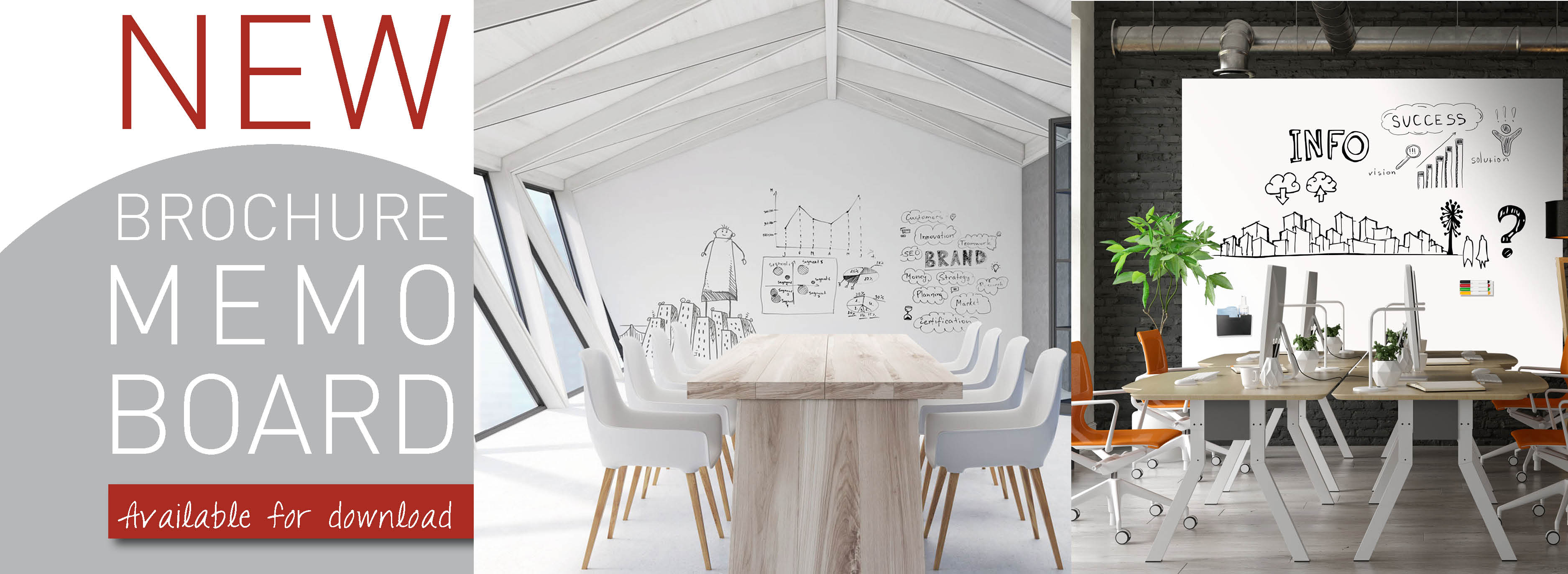 Improve the walls in offices with our magnetically-receptive whiteboard and blackboard films. Find inspiration with our rear projection films and get ideas for company-branded workspaces at home. All together in a handy PDF brochure and available for download.